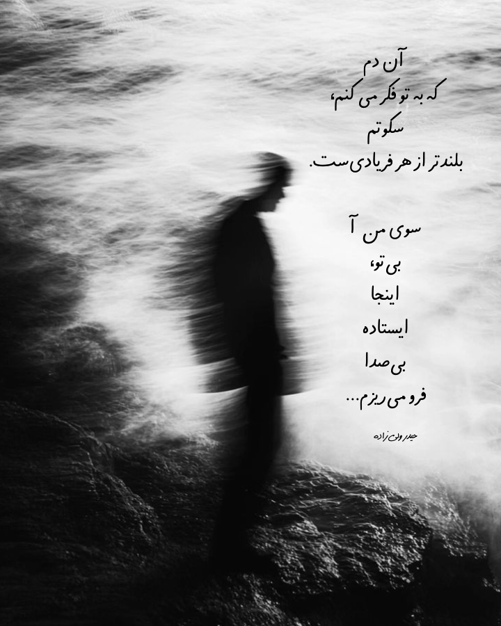 آن دم که به تو فکر میکنم، سکوتم بلندتر از هر فریادیست. سوی من آ بیتو، اینجا ایستاده بیصدا فرو میریزم…