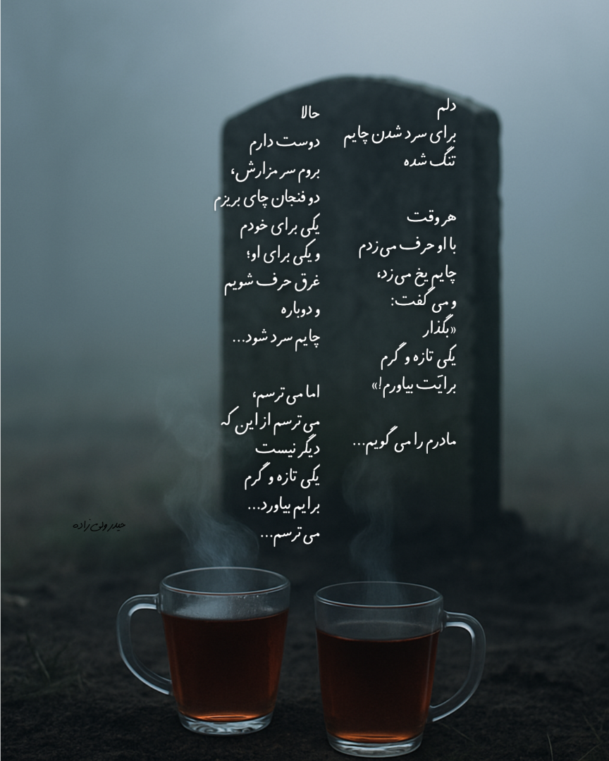 دلم برای سرد شدن چایم تنگ شده هر وقت با او حرف میزدم چایم یخ میزد، و میگفت: «بگذار یکی تازه و گرم برایَت بیاورم!» مادرم را میگویم… حالا دوست دارم بروم سر مزارش، دو فنجان چای بریزم یکی برای خودم و یکی برای او؛ غرق حرف شویم و دوباره چایم سرد … ادامه
